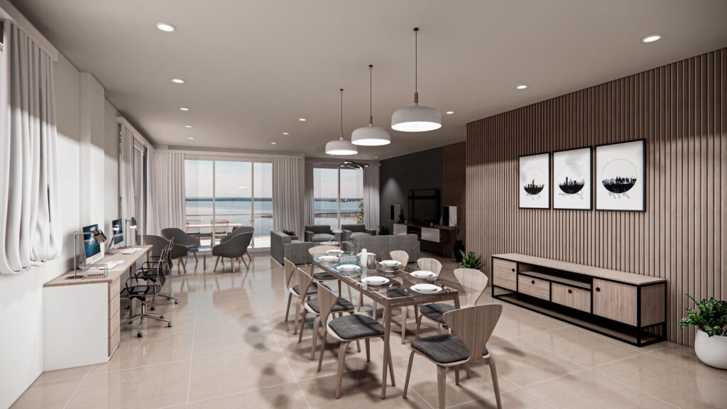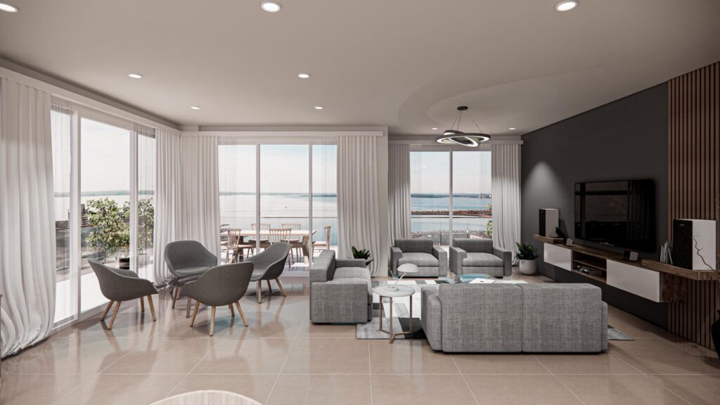 En Victoria Tower Residence, nuestras unidades premium redefinen el concepto de amplitud, luminosidad y elegancia. Estas magníficas residencias ofrecen vistas excepcionales y están diseñadas para brindar el máximo confort. Una de ellas está estratégicamente orientada hacia el suroeste de la ciudad, regalando una vista panorámica al río Paraná en su lateral norte. La otra unidad se abre majestuosamente hacia el Río Paraná, ofreciendo también una vista adicional hacia el oeste. Cada una de estas residencias brilla con sus 355 m2.